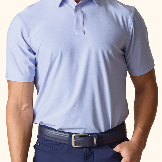 The Dodge Polo is Straight Down's best-selling performance polo for a reason. It’s made from a soft, stretchy cross-dyed heather fabric that feels great whether you’re on the course or in the office. The lightweight and breathable material is quick-drying, moisture-wicking, and offers SPF 50+ protection to keep you cool, dry, and shielded from the sun. Plus, the collar features their signature durable design that stays flat wash after wash, making it a solid choice for both play and everyday wear.